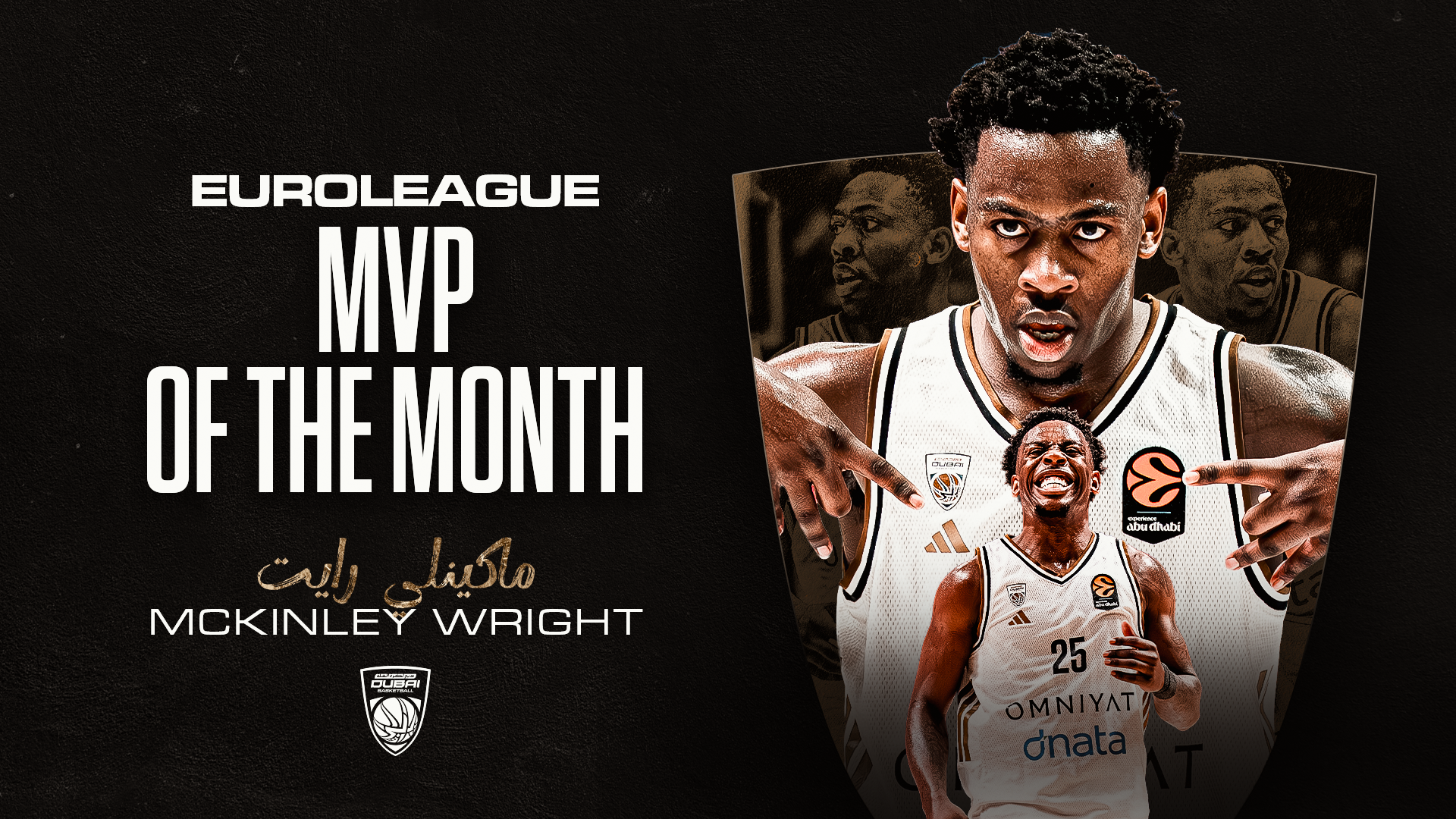 The recognition comes at the end of a perfect month in which Dubai Basketball went 4 for 4, earning statement wins over Olympiacos Piraeus and Real Madrid at home, as well as a crucial road victory against EA7 Emporio Armani Milan, before closing the run with another home triumph over LDLC ASVEL.