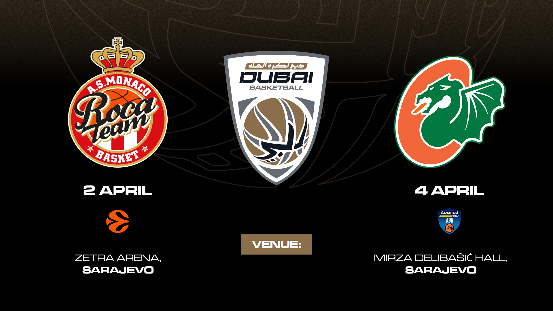 - EuroLeague Round 35: Dubai Basketball vs AS Monaco to Zetra Arena (2 April)